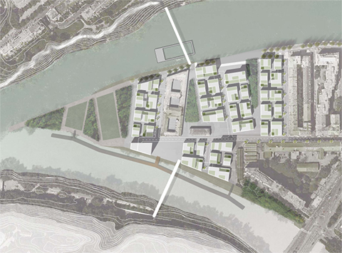 Design for the succesive recovery of urban areas at the confluence of the rivers Rhone and Arve